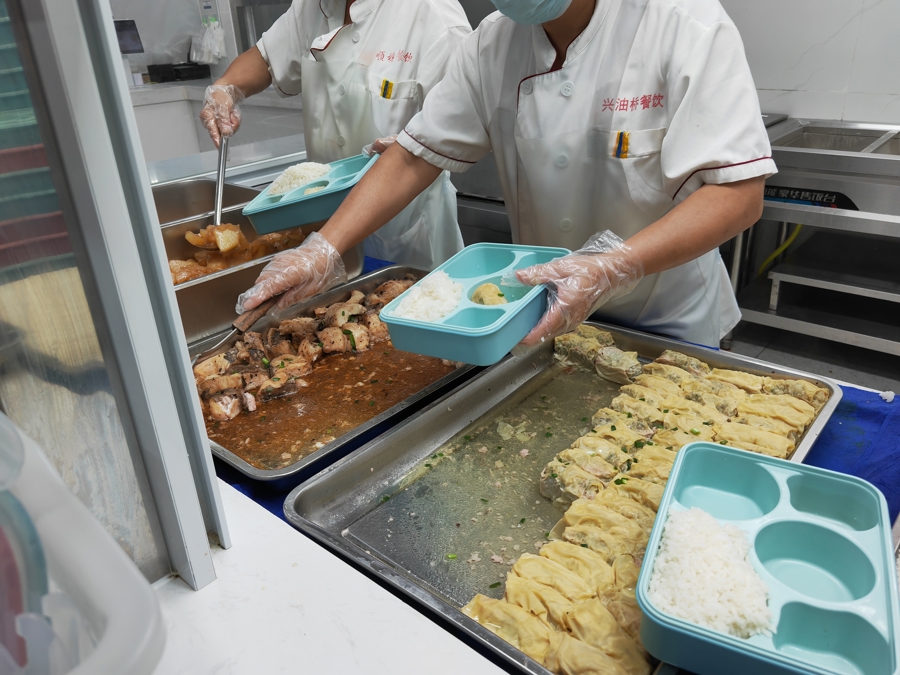 上午9时30分左右,陈家镇永逸社区长者食堂里,热气腾腾的饭菜刚出锅,工作人员就赶紧装盒保存,放入保温箱。随后,送餐员们分区域开始送餐至村居助餐点,再由村居送餐员逐一发放到老人手中。“年纪大了,做饭力不从心,现在中、晚餐不用愁,三菜一汤荤素搭配,比自己做的还丰盛!”捧着热乎的餐盒,陈家镇的李阿婆笑着说。