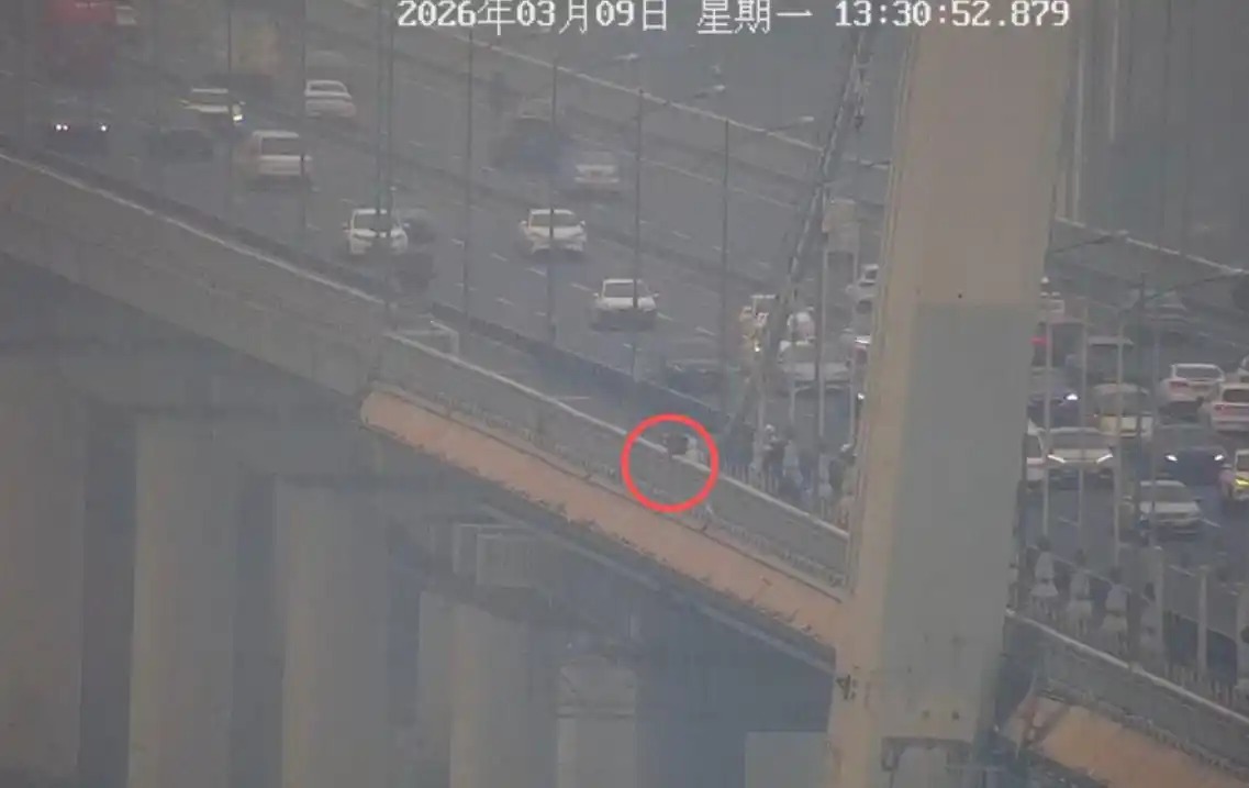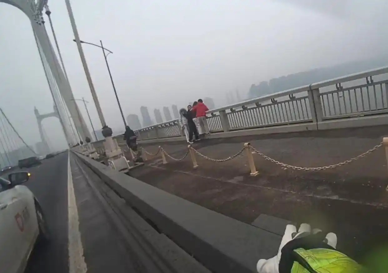 现场视频显示,辅警叶进赶到时,女子的手还紧紧地抓在大桥护栏上,拒绝松手,并表示,自己想在桥上看看风景,放松一下心情。“这里危险,而且风大,我是交警,你要看风景,我可以护送你到桥下去看。”